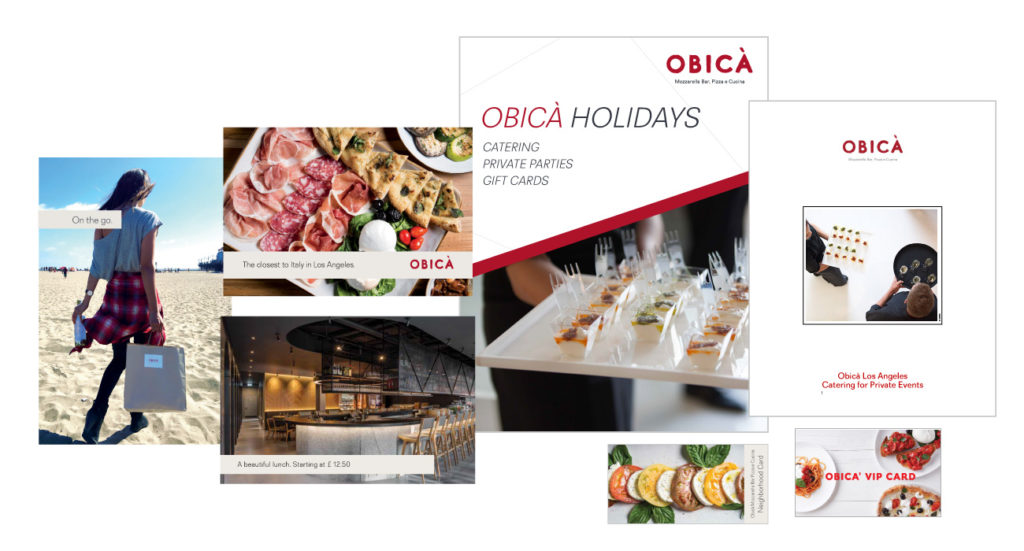 Corporate ID: Obica Uncategorized Application of pre-existing logo in all restaurant materials: marketing, corporate, PR & web, location, etc.